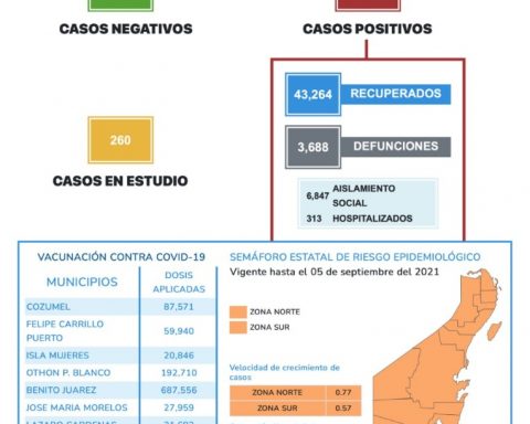 MásAGENCIA SIM Chetumal.- Las cifras reportadas esta tarde por la Secretaría de Salud estatal reflejan un descenso en la curva de contagios