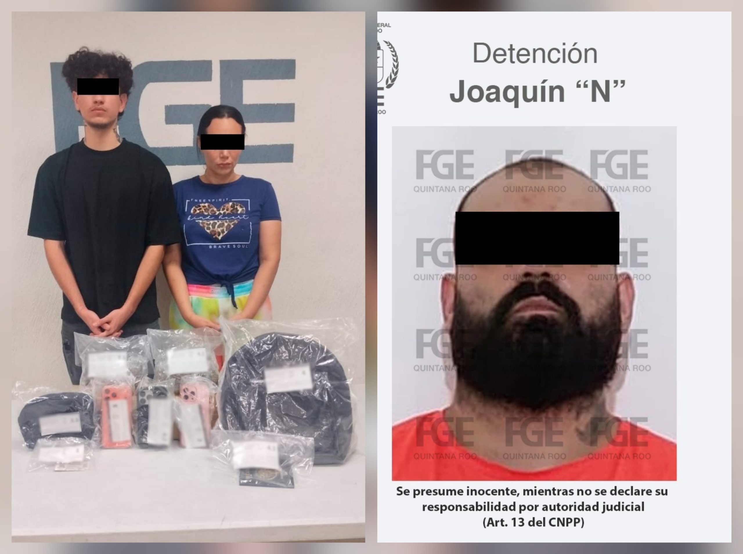 Más• La Fiscalía General del Estado informa que los detenidos son Francisco Ángel “N”, Brillante “N” y Joaquín “N” Playa del Carmen.-
